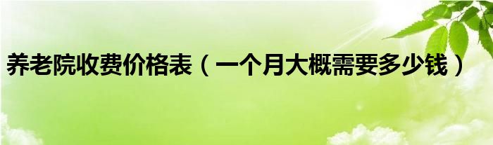大家好,综合小编来为大家讲解下。养老院收费价格表,一个月大概需要多少钱这个很多人还不知道,现在让我们一起来看看吧!