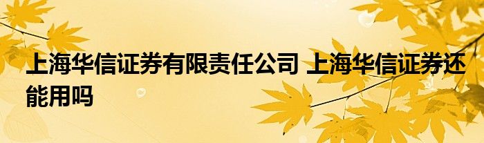 导读 大家好,小元来为大家解答问题。上海华信证券有限责任公司,上海华信证券还能用吗,这个很多人还不知道,现在让我们一起来了解下吧!