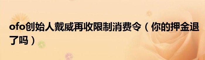 大家好,综合小编来为大家讲解下。ofo创始人戴威再收限制消费令,你的押金退了吗这个很多人还不知道,现在让我们一起来看看吧!