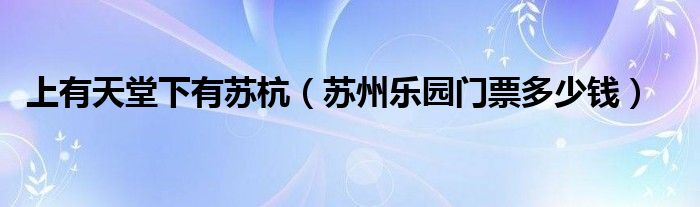 导读 大家好,综合小编来为大家讲解下。上有天堂下有苏杭,苏州乐园门票多少钱这个很多人还不知道,现在让我们一起来看看吧!1、人们常说上有天堂