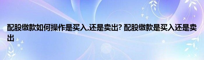 导读 大家好,小元来为大家解答问题。配股缴款如何操作是买入,还是卖出?,配股缴款是买入还是卖出,这个很多人还不知道,现在让我们一起来了解下