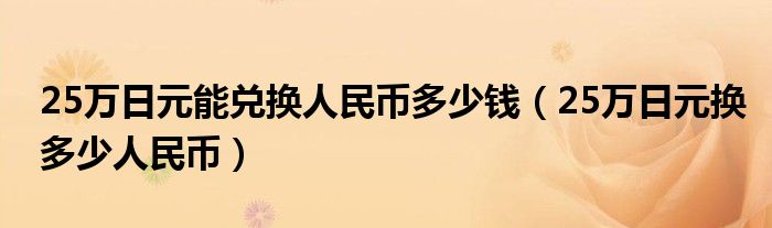 大家好,综合小编来为大家讲解下。25万日元能兑换人民币多少钱,25万日元换多少人民币这个很多人还不知道,现在让我们一起来看看吧!
