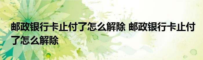 导读 大家好,小呗来为大家解答以上的问题邮政银行卡止付了怎么解除,邮政银行卡止付了怎么解除这个很多人还不知道,现在让我们一起来了解下吧!