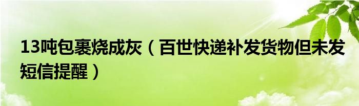 大家好,综合小编来为大家讲解下。13吨包裹烧成灰,百世快递补发货物但未发短信提醒这个很多人还不知道,现在让我们一起来看看吧!