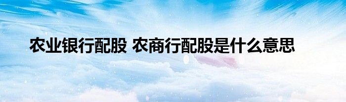 导读 大家好,小元来为大家解答问题。农业银行配股,农商行配股是什么意思,这个很多人还不知道,现在让我们一起来了解下吧!