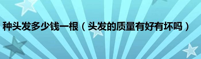 大家好,综合小编来为大家讲解下。种头发多少钱一根,头发的质量有好有坏吗这个很多人还不知道,现在让我们一起来看看吧!