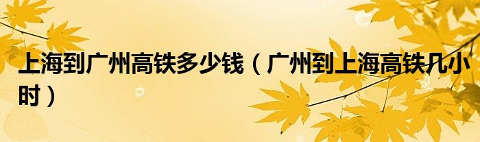 大家好,综合小编来为大家讲解下。上海到广州高铁多少钱,广州到上海高铁几小时这个很多人还不知道,现在让我们一起来看看吧!