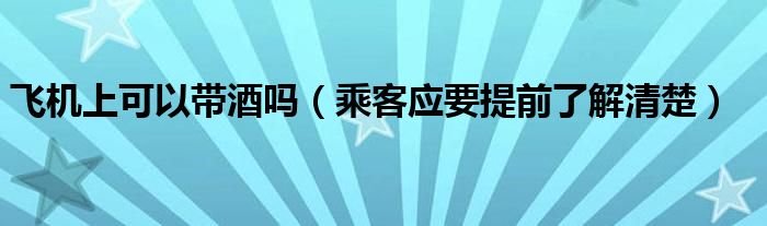 大家好,综合小编来为大家讲解下。飞机上可以带酒吗,乘客应要提前了解清楚这个很多人还不知道,现在让我们一起来看看吧!
