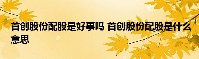 导读 大家好,小元来为大家解答问题。首创股份配股是好事吗,首创股份配股是什么意思,这个很多人还不知道,现在让我们一起来了解下吧!