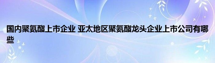 大家好,小元来为大家解答问题。国内聚氨酯上市企业,亚太地区聚氨酯龙头企业上市公司有哪些,这个很多人还不知道,现在让我们一起来了解下吧!