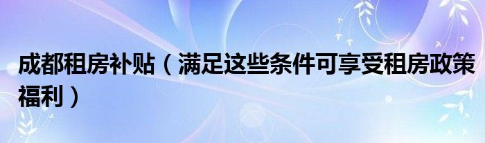 大家好,综合小编来为大家讲解下。成都租房补贴,满足这些条件可享受租房政策福利这个很多人还不知道,现在让我们一起来看看吧!