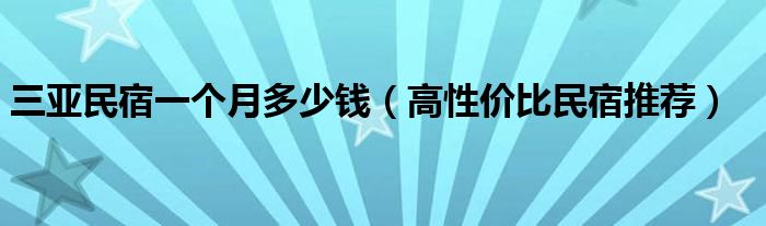 大家好,综合小编来为大家讲解下。三亚民宿一个月多少钱,高性价比民宿推荐这个很多人还不知道,现在让我们一起来看看吧!