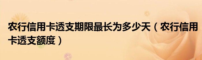 导读 大家好,小卡来为大家解答以上问题。农行信用卡透支期限最长为多少天,农行信用卡透支额度很多人还不知道,现在让我们一起来看看吧!