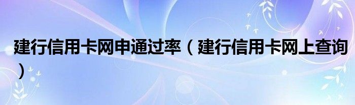 大家好,小卡来为大家解答以上问题。建行信用卡网申通过率,建行信用卡网上查询很多人还不知道,现在让我们一起来看看吧!
