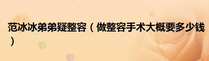 大家好,综合小编来为大家讲解下。范冰冰弟弟疑整容,做整容手术大概要多少钱这个很多人还不知道,现在让我们一起来看看吧!