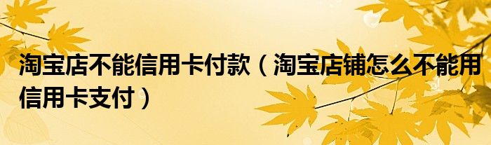 大家好,综合小编来为大家讲解下。淘宝店不能信用卡付款,淘宝店铺怎么不能用信用卡支付这个很多人还不知道,现在让我们一起来看看吧!