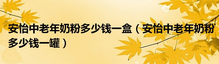 大家好,综合小编来为大家讲解下。安怡中老年奶粉多少钱一盒,安怡中老年奶粉多少钱一罐这个很多人还不知道,现在让我们一起来看看吧!