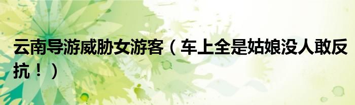 大家好,综合小编来为大家讲解下。云南导游威胁女游客,车上全是姑娘没人敢反抗!这个很多人还不知道,现在让我们一起来看看吧!