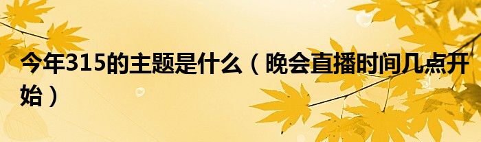 大家好,综合小编来为大家讲解下。今年315的主题是什么,晚会直播时间几点开始这个很多人还不知道,现在让我们一起来看看吧!