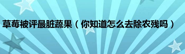大家好,综合小编来为大家讲解下。草莓被评最脏蔬果,你知道怎么去除农残吗这个很多人还不知道,现在让我们一起来看看吧!
