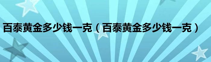 大家好,综合小编来为大家讲解下。百泰黄金多少钱一克,百泰黄金多少钱一克这个很多人还不知道,现在让我们一起来看看吧!