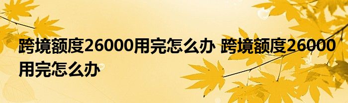 导读 大家好,小元来为大家解答问题。跨境额度26000用完怎么办,跨境额度26000用完怎么办,这个很多人还不知道,现在让我们一起来了解下吧!