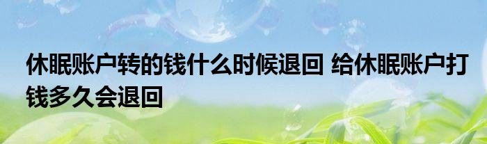 导读 大家好,小呗来为大家解答以上的问题休眠账户转的钱什么时候退回,给休眠账户打钱多久会退回这个很多人还不知道,现在让我们一起来了解下吧!...