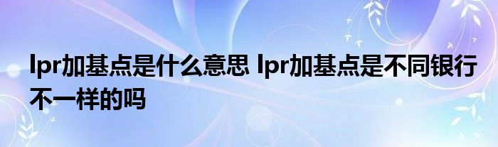 导读 大家好,小财来为大家解答以上的问题。lpr加基点是什么意思,lpr加基点是不同银行不一样的吗这个很多人还不知道,现在让我们一起来看看吧!