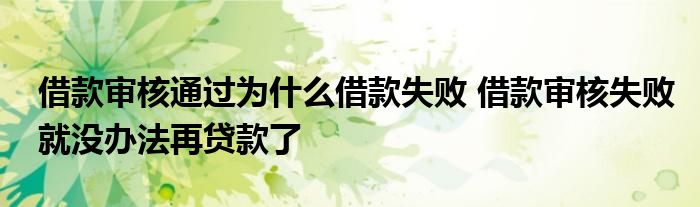 大家好,小财来为大家解答保险的问题。借款审核通过为什么借款失败,借款审核失败就没办法再贷款了这个很多人还不知道,现在让我们一起来看看吧!