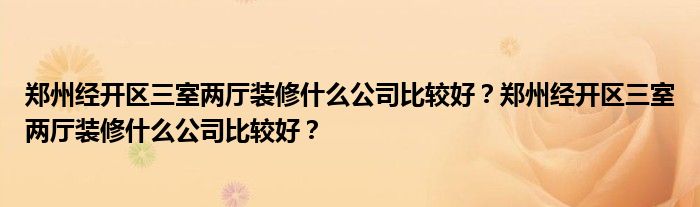 导读 大家好,萧艾回答以上郑州经开区三室两厅装修哪家公司好,郑州经开区三室两厅装修哪家公司好。装修房子的时候不知道郑州经开区三室两厅装修