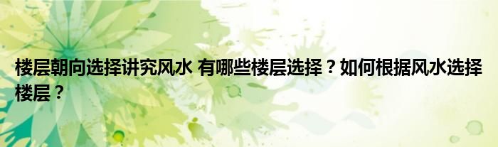 大家好,萧艾回答以上关于如何根据风水选择楼层的问题。装修房子的时候,不知道怎么根据风水选地板。关于如何根据风水选择楼层的信息有哪些?跟大家分享一下吧。