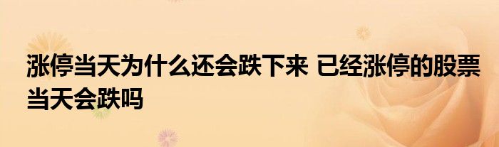 导读 大家好,小理来为大家解答以上的问题。涨停当天为什么还会跌下来,已经涨停的股票当天会跌吗这个很多人还不知道,现在让我们一起来看看吧!
