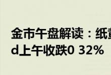 周一(4月25日)午盘,国际黄金目前跌幅0 75%;黄金td上午收盘价403 10元 克,跌幅0 32%;纸黄金跌幅0 24%。 上午收盘跌幅情况:国际黄金上午