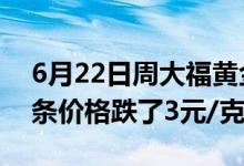 2022年6月22日,实物黄金周六福黄金黄金报价513元 克,相比上一个交易日跌了3元 克。铂金价格今天报价372元 克,相比昨日跌了1元 克。金条