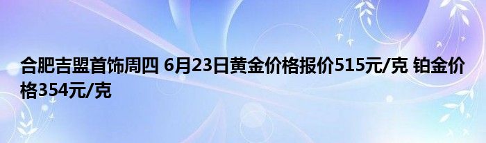 2022年6月23日,实物黄金吉盟首饰黄金黄金报价515元/克,相比上一个交易日上涨了3元/克。铂金价格今天报价354元/克,相比昨日跌了4元/克。