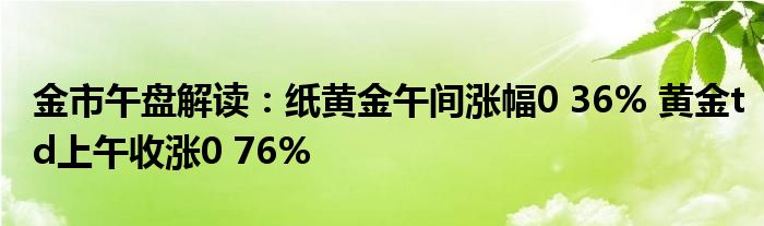 导读 周二(4月12日)午盘,国际黄金目前涨幅0 26%;黄金td上午收盘价401元 克,涨幅0 76%;纸黄金涨幅0 35%。 上午收盘涨幅情况:国际黄金上午