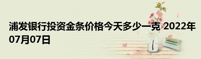 导读 提供浦发银行投资金条价格今天多少一克(2022年07月07日),浦发银行投资金条价格最新消息(2022年07月07日)