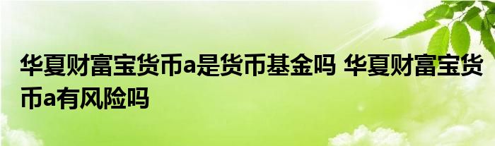 大家好,小基来为大家解答以上的问题。华夏财富宝货币a是货币基金吗,华夏财富宝货币a有风险吗这个很多人还不知道,现在让我们一起来看看吧!