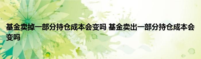 导读 大家好,小基来为大家解答以上的问题。基金卖掉一部分持仓成本会变吗,基金卖出一部分持仓成本会变吗这个很多人还不知道,现在让我们一起来看