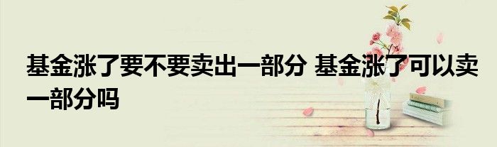 导读 大家好,小基来为大家解答以上的问题。基金涨了要不要卖出一部分,基金涨了可以卖一部分吗这个很多人还不知道,现在让我们一起来看看吧!