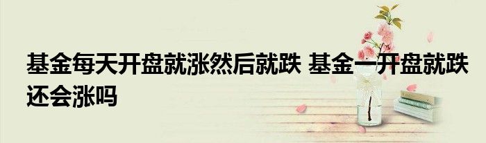 导读 大家好,小基来为大家解答以上的问题。基金每天开盘就涨然后就跌,基金一开盘就跌还会涨吗这个很多人还不知道,现在让我们一起来看看吧!