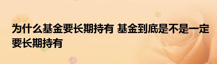 导读 大家好,小基来为大家解答以上的问题。为什么基金要长期持有,基金到底是不是一定要长期持有这个很多人还不知道,现在让我们一起来看看吧!