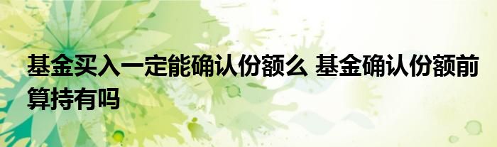 导读 大家好,小基来为大家解答以上的问题。基金买入一定能确认份额么,基金确认份额前算持有吗这个很多人还不知道,现在让我们一起来看看吧!