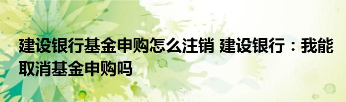 导读 大家好,小基来为大家解答以上的问题。建设银行基金申购怎么注销,建设银行:我能取消基金申购吗这个很多人还不知道,现在让我们一起来看看吧