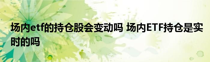 导读 大家好,小基来为大家解答以上的问题。场内etf的持仓股会变动吗,场内ETF持仓是实时的吗这个很多人还不知道,现在让我们一起来看看吧!