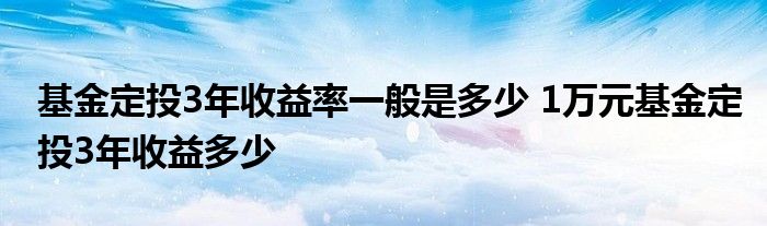 导读 大家好,小基来为大家解答以上的问题。基金定投3年收益率一般是多少,1万元基金定投3年收益多少这个很多人还不知道,现在让我们一起来看看吧