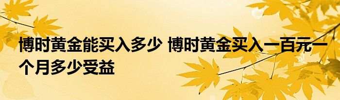 导读 大家好,小基来为大家解答以上的问题。博时黄金能买入多少,博时黄金买入一百元一个月多少受益这个很多人还不知道,现在让我们一起来看看吧!