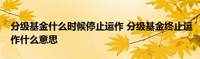 导读 大家好,小基来为大家解答以上的问题。分级基金什么时候停止运作,分级基金终止运作什么意思这个很多人还不知道,现在让我们一起来看看吧!