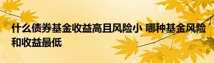导读 大家好,小基来为大家解答以上的问题。什么债券基金收益高且风险小,哪种基金风险和收益最低这个很多人还不知道,现在让我们一起来看看吧!