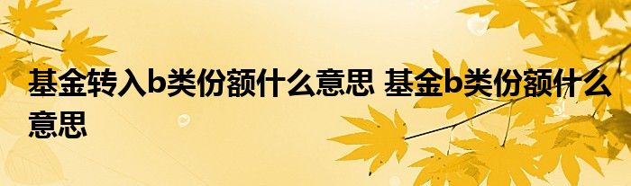 大家好,小基来为大家解答社保的问题。基金转入b类份额什么意思,基金b类份额什么意思这个很多人还不知道,现在让我们一起来看看吧!